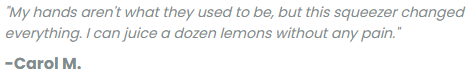 • Saves 87% Of Your Strength  Compared To Traditional Squeezers  (Even Arthritis-Friendly)