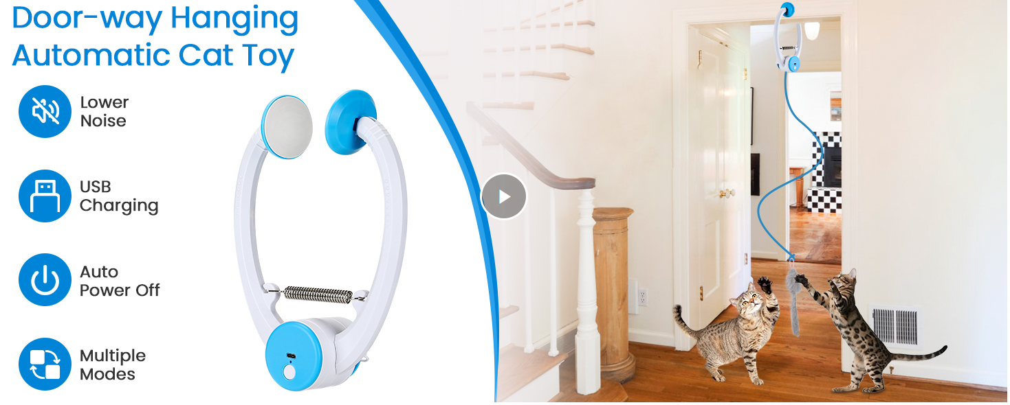 • Electronic Door Hanging Cat Toy: This unique door hanging cat toy is designed to simulate interactions between humans and cats. Simply hang it on the door frame, turn on the switch, and it immediately captures your cat's attention, encouraging them to chase.Cat Toys Interactive for Indoor Cats
