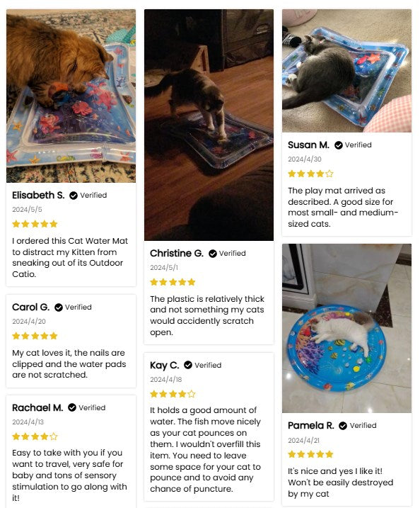 • Material Safety: Made of high quality lightweight silicone, BAP free, hot summer, cats can not only play on the mat but also sleep and rest on it, filled with water to cool cats, making cats feel cool in the hot summer.